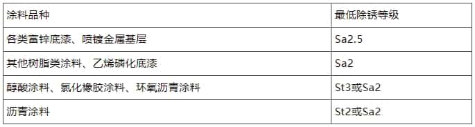 另外,适当的表面粗糙度可提高涂层对表面的机械咬合作用,增加涂层与金属表面分子的吸引力。对于常用涂料而言,其粗糙度范闱以40 μm?75 μm为宜,最大不宜超过100 μm。